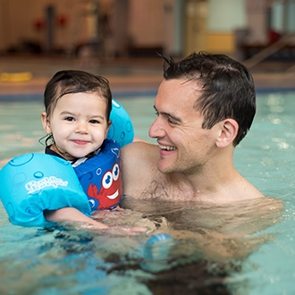 JCC Member families enjoy water play together during open swim times and American Red Cross Learn to Swim classes are offered throughout the week for Preschool and Youth age swimmers.