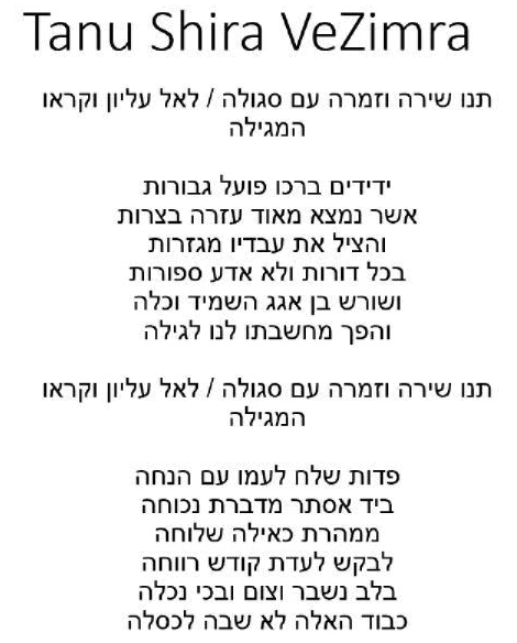 Click here to read the Piyut (liturgical poem) retelling (shorting) the story of Queen Esther and Purim. Written in Iran(Persia)/Kurdistan in the 1500’s it starts: “Give song and praise oh virtuous G-d and let us read the Megillah.”